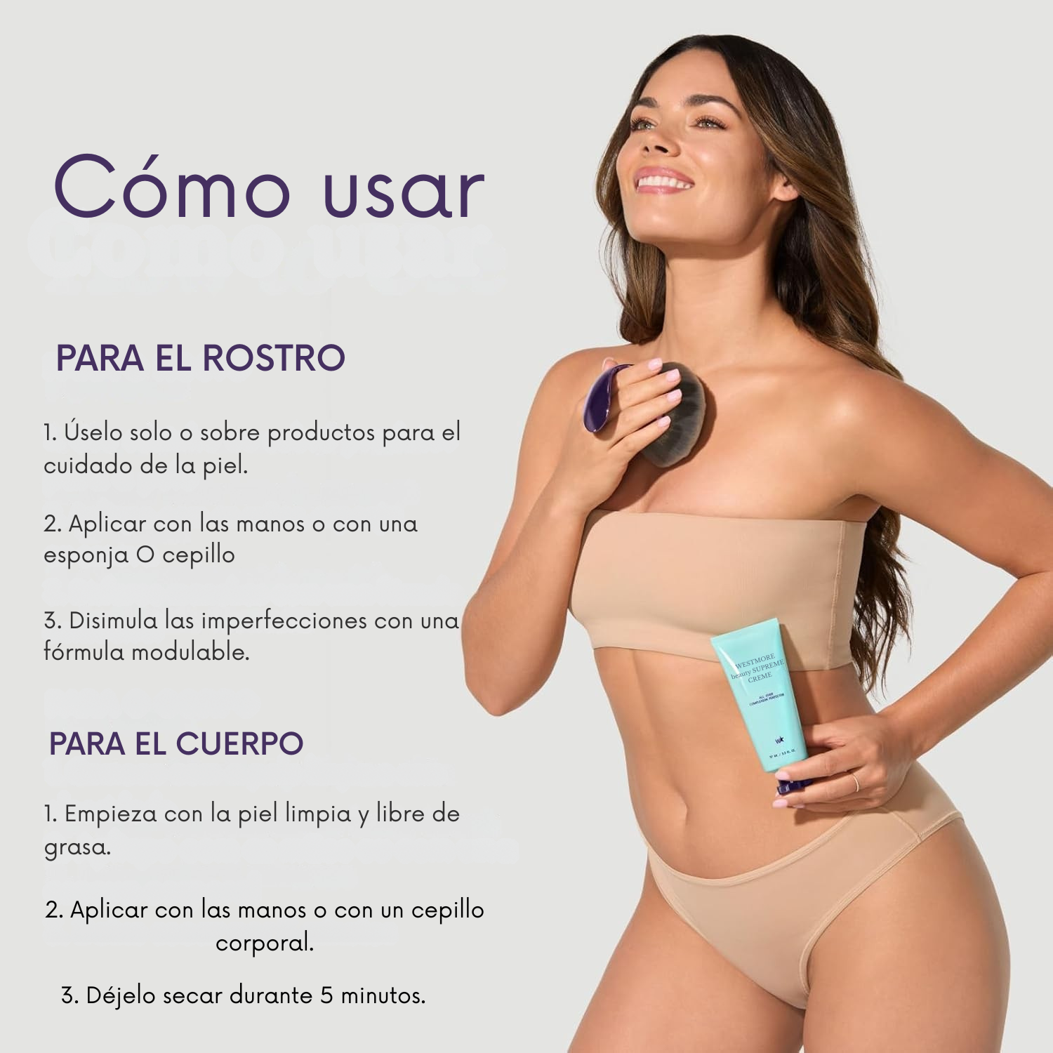 ✅Sí, Supreme Crème es un producto multifuncional que se puede aplicar tanto en el rostro como en el cuerpo, proporcionando una cobertura perfecta y uniforme.